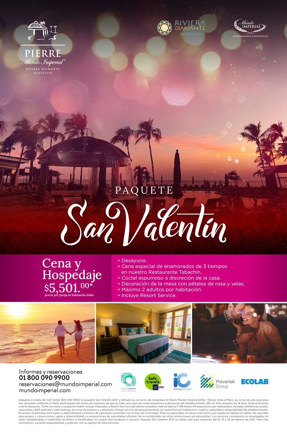 Es importante mencionar que los hoteles cuentan con el programa Imperial Clean, que está basado en normativas turísticas internacionales y nacionales, que funcionan como guía y son una herramienta e instructivo para el uso correcto de los mismos en las empresas o centros de trabajo del sector turístico frente a la situación producida por el coronavirus (Covid-19), esto con el objetivo de mantener un ambiente de protección, goce y bienestar para los huéspedes y comensales.
